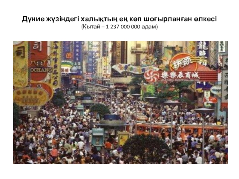 Слайд 7Дүние жүзіндегі халықтың ең көп шоғырланған өлкесі (Қытай – 1 237 000