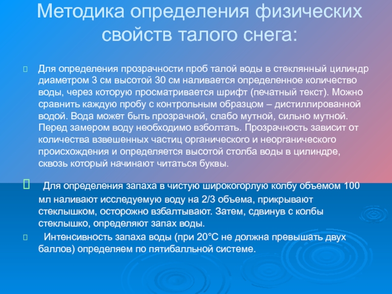 Слайд 5Методика определения физических свойств талого снега: