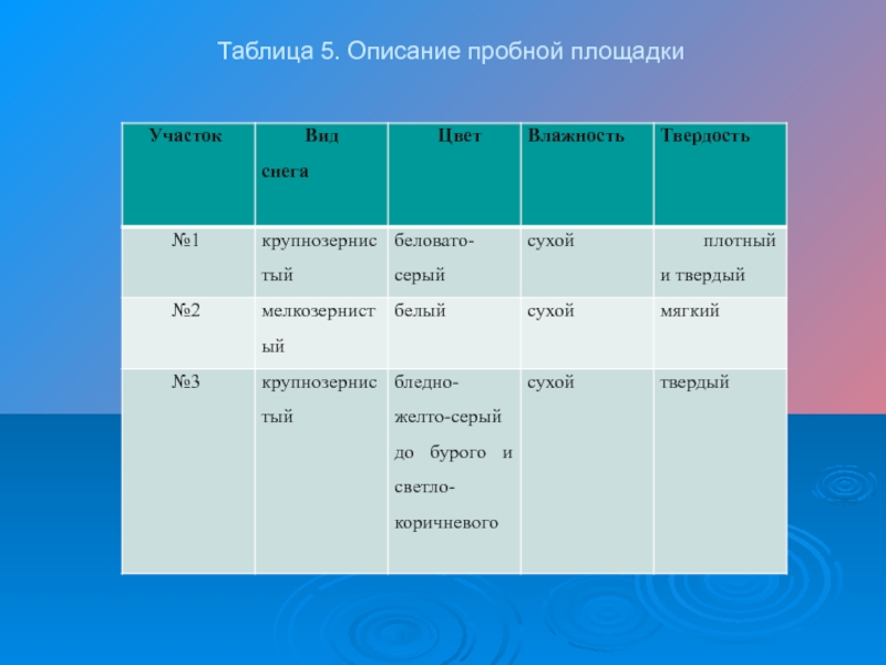 Слайд 19Таблица 5. Описание пробной площадки