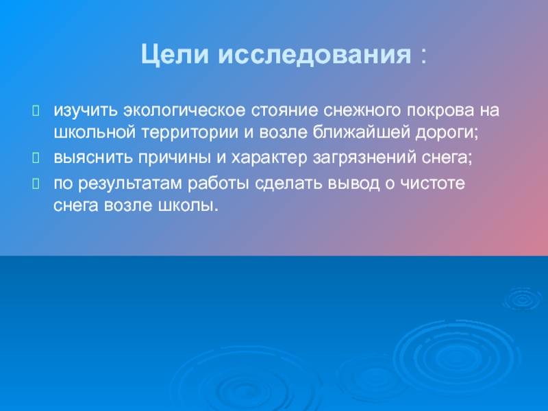изучить экологическое стояние снежного покрова на школьной территории
