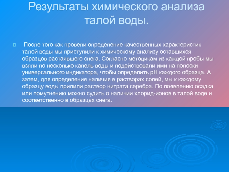 Слайд 22Результаты химического анализа талой воды.