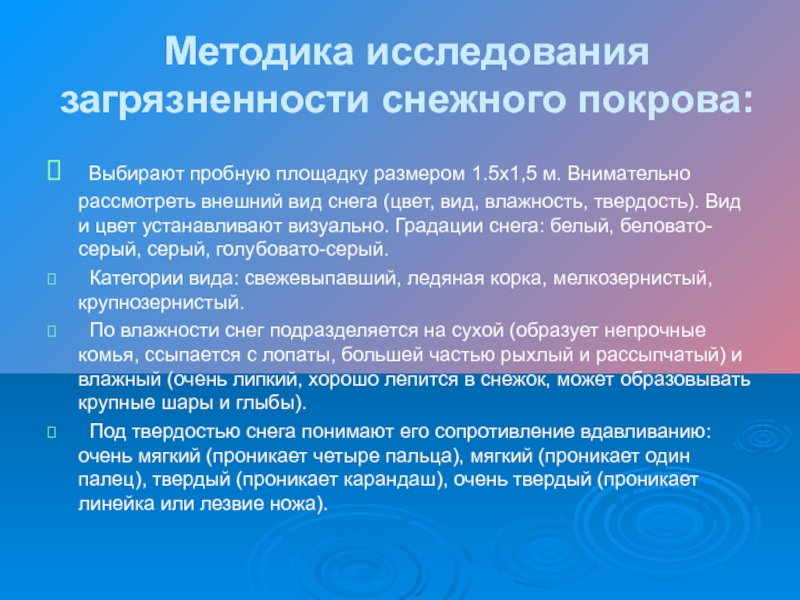 Слайд 4Методика исследования загрязненности снежного покрова: