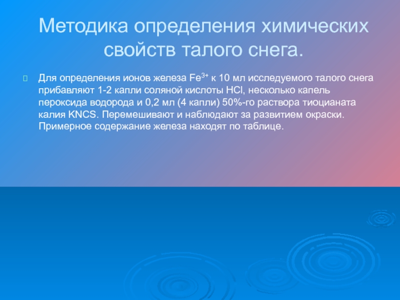 Слайд 10Методика определения химических свойств талого снега.