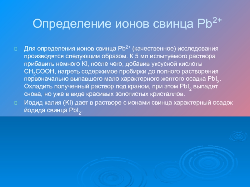 Слайд 12Определение ионов свинца Pb2+