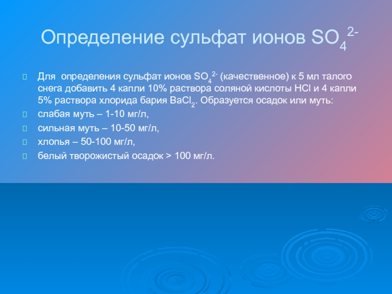 Слайд 14Определение сульфат ионов SO42-