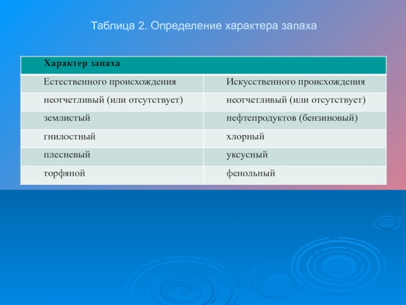Слайд 7Таблица 2. Определение характера запаха