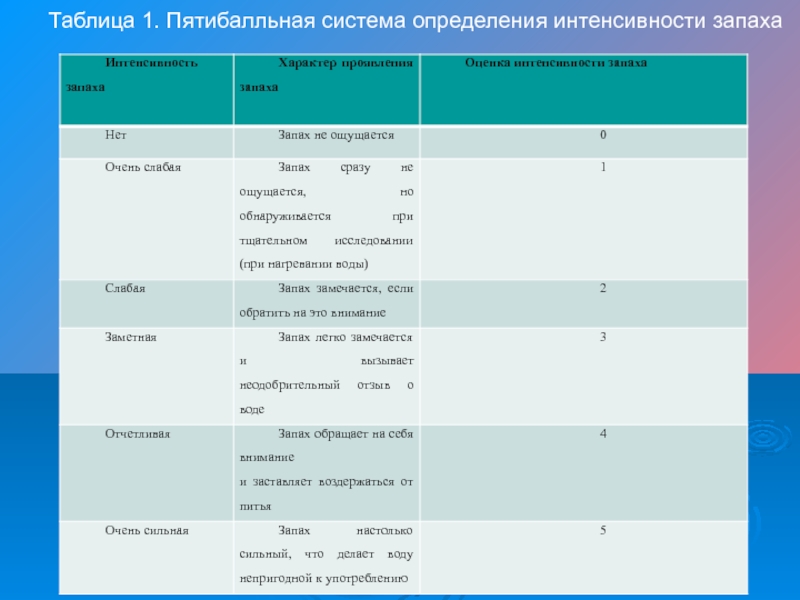 Таблица 1. Пятибалльная система определения интенсивности запаха