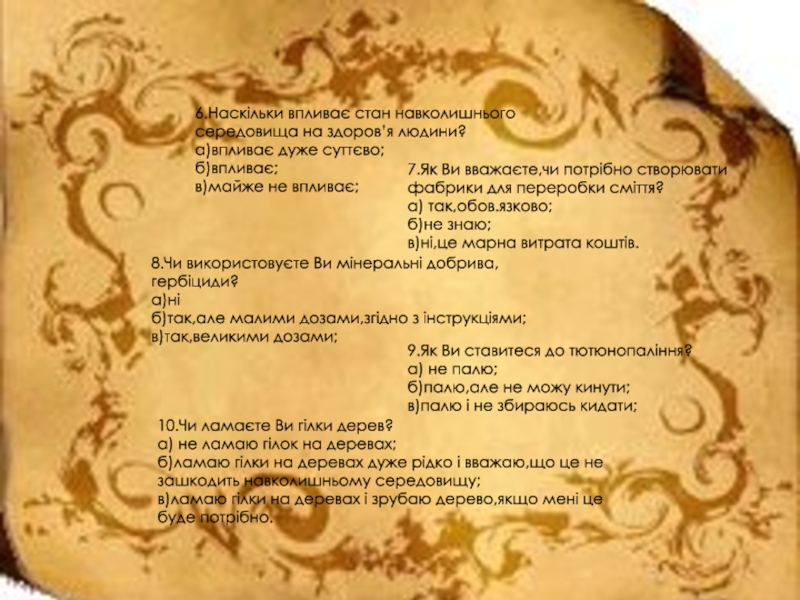6.Наскільки впливає стан навколишнього середовища на здоров’я людини?