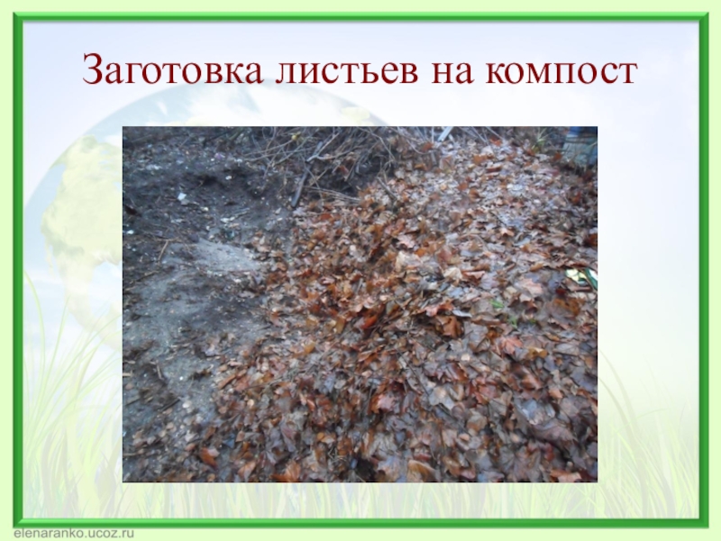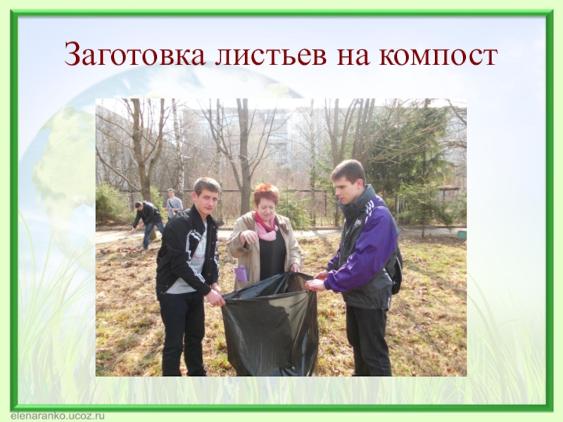 Слайд 10Заготовка листьев на компост