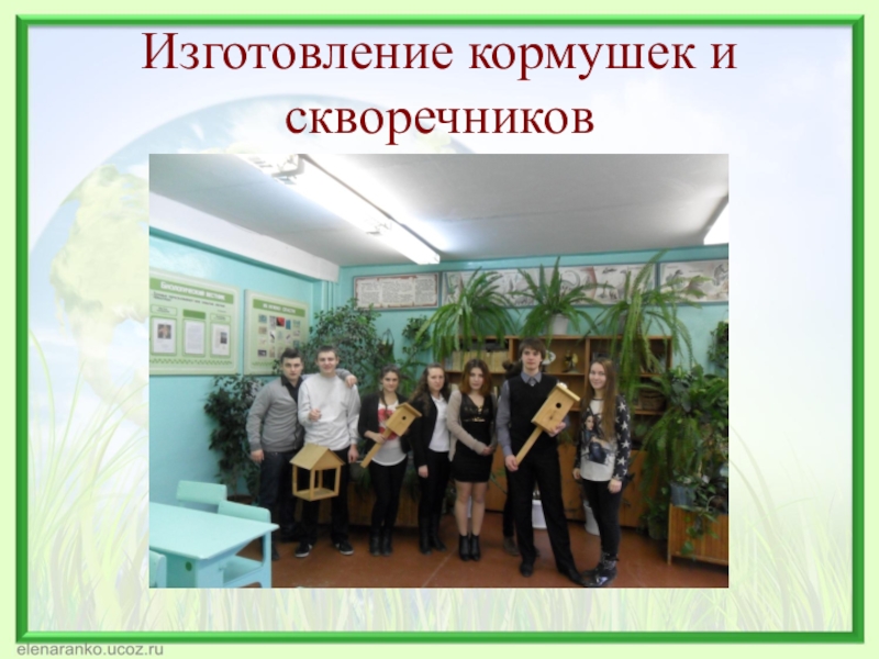 Слайд 14Изготовление кормушек и скворечников