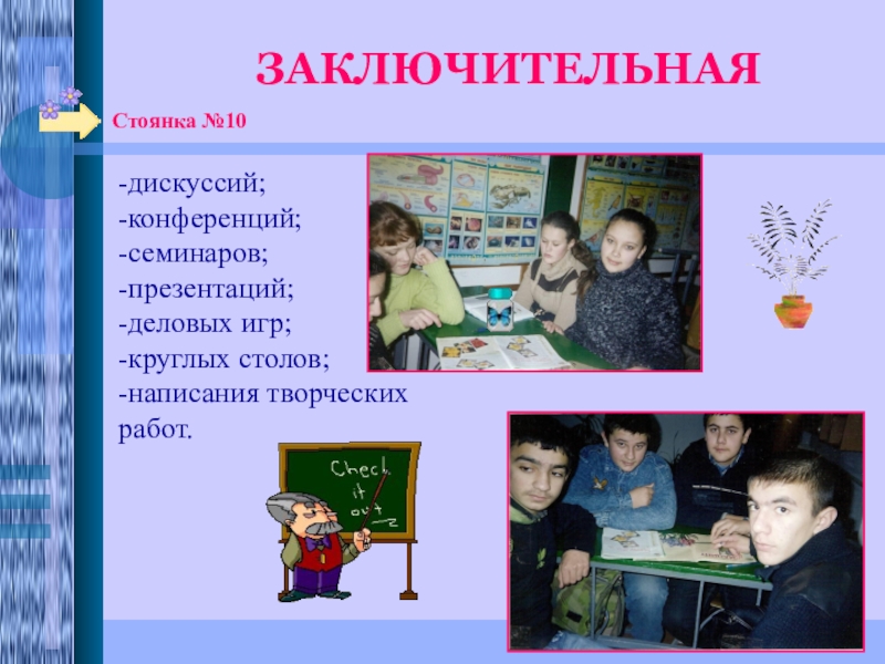 Это сайт презентаций, где можно хранить и обмениваться своими презентациями, докладами, проектами, шаблонами в формате PowerPoint с другими пользователями. Мы помогаем школьникам, студентам, учителям, преподавателям хранить и обмениваться учебными материалами.