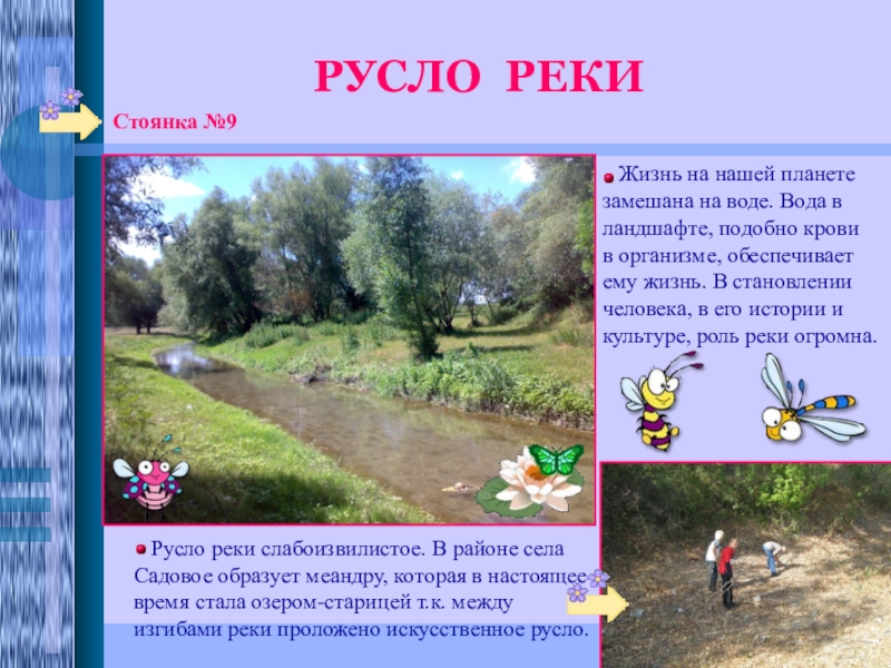 Садовое образует меандру, которая в настоящее время стала озером-старицей т.к. между