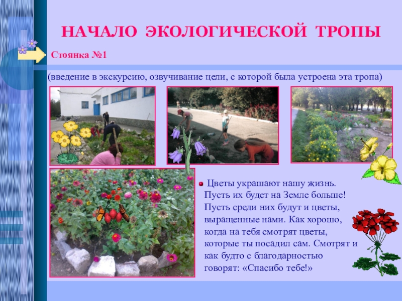 Цветы украшают нашу жизнь. Пусть их будет на Земле больше! Пусть среди них будут и цветы, выращенные нами. Как хорошо, когда на тебя смотрят цветы, которые ты посадил сам. Смотрят и как будто с благодарностью говорят: «Спасибо тебе!»