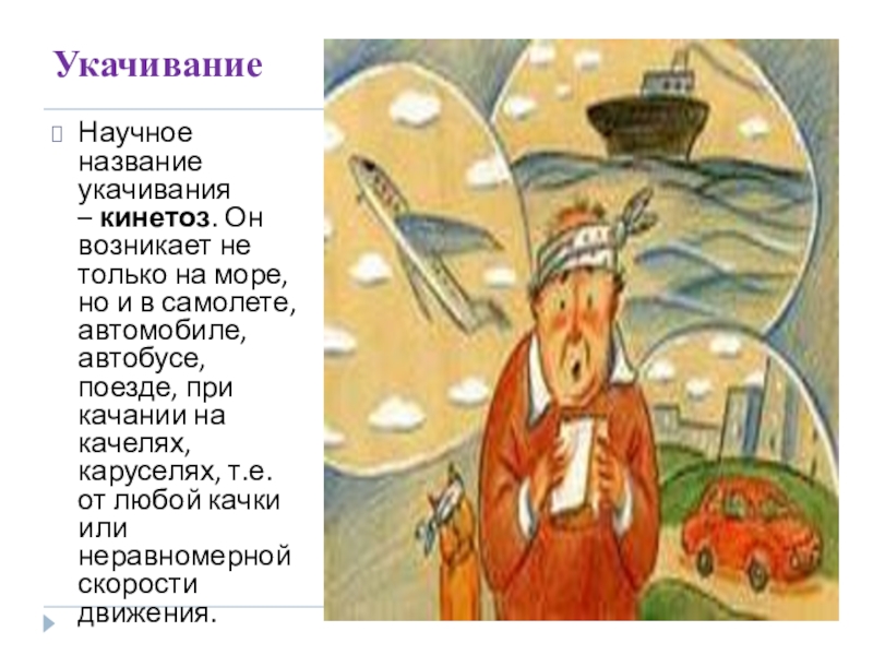 Научное название укачивания – кинетоз. Он возникает не только на море,