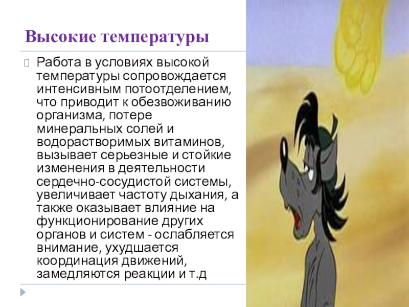 Работа в условиях высокой температуры сопровождается интенсивным потоотделением, что приводит