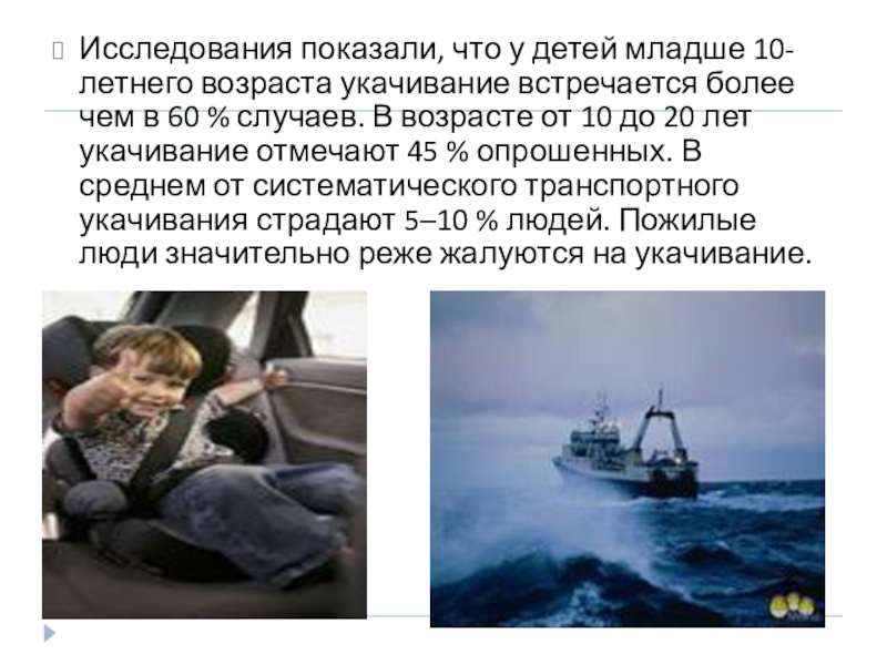 Исследования показали, что у детей младше 10-летнего возраста укачивание встречается более