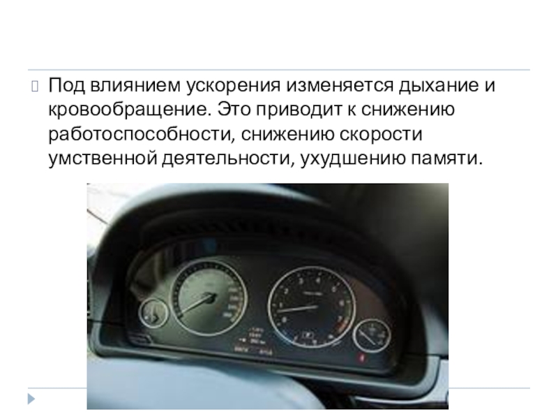 Под влиянием ускорения изменяется дыхание и кровообращение. Это приводит к снижению