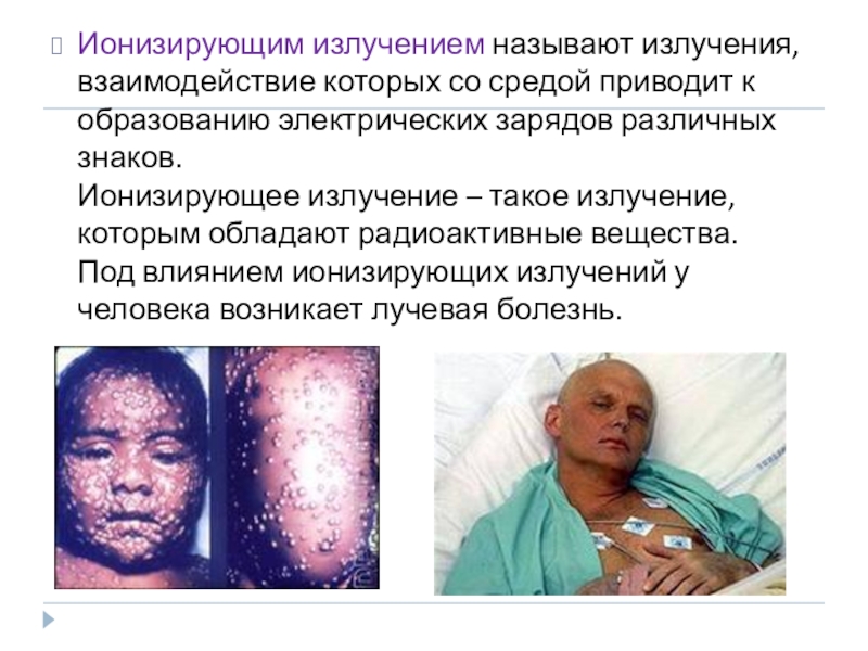 Под влиянием ионизирующих излучений у человека возникает лучевая болезнь.