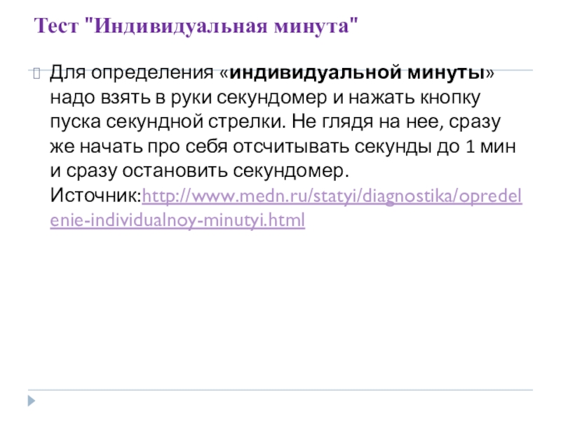 Для определения «индивидуальной минуты» надо взять в руки секундомер