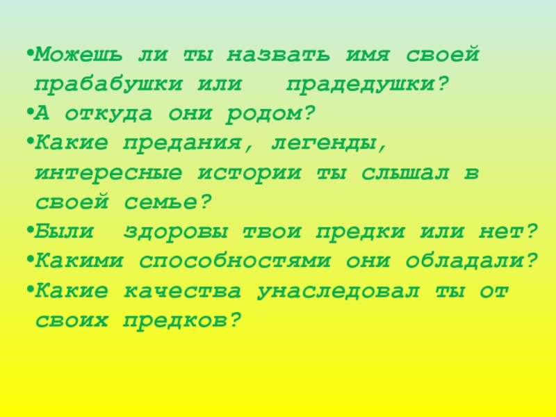 Можешь ли ты назвать имя своей прабабушки или прадедушки?