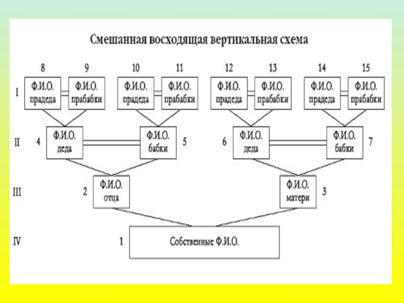 История генеалогии. Виды родословий (восходящие и нисходящие, древо, таблицы, росписи, карточки). Терминология. Законы генеалогии (трех поколений, удвоения числа предков, убывания предков). Составление родословной (с чего начать, какие обозначения принять в родословных схемах, составление восходящего и нисходящего древа).
