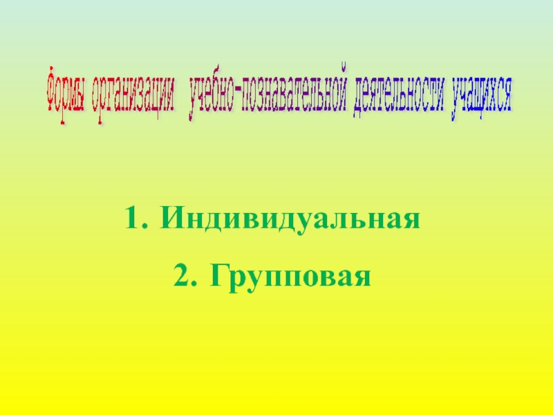 Слайд 10Формы организации учебно-познавательной деятельности учащихся