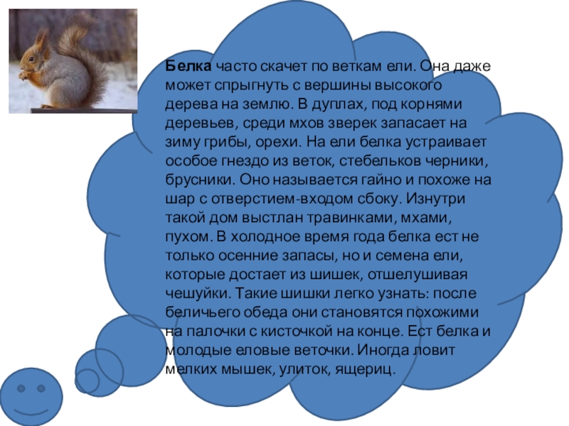 Слайд 26Белка часто скачет по веткам ели. Она даже может спрыгнуть с