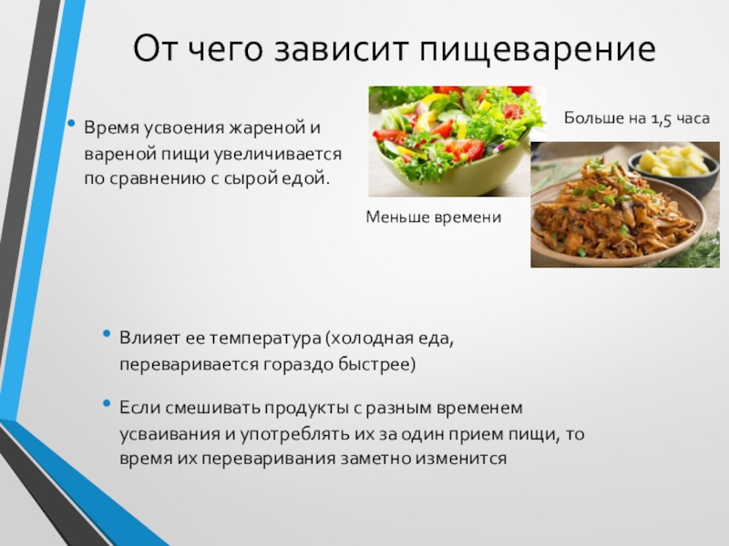 Влияет ее температура (холодная еда, переваривается гораздо быстрее)