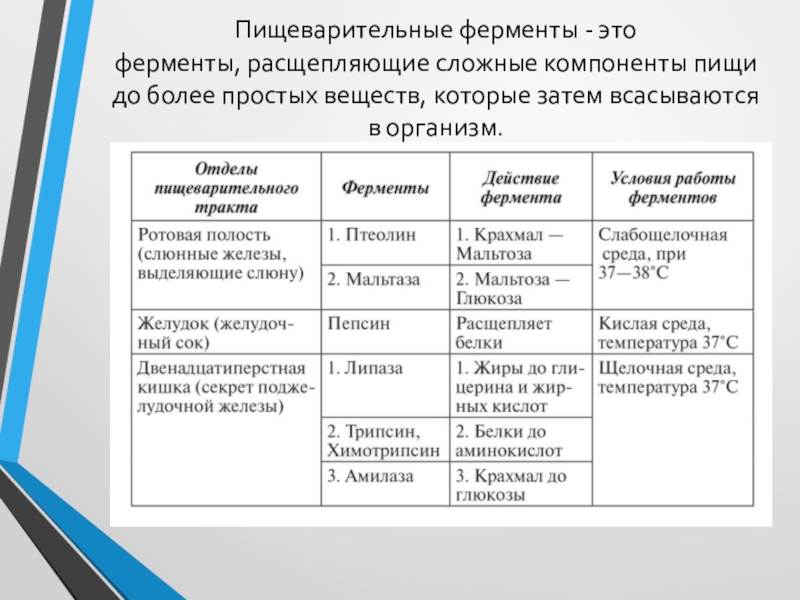 Пепсин (вызывает набухание и денатурацию (разрушение) белков и способствует последующему их расщеплению до аминокислот)