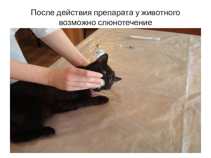 Слайд 11После действия препарата у животного возможно слюнотечение