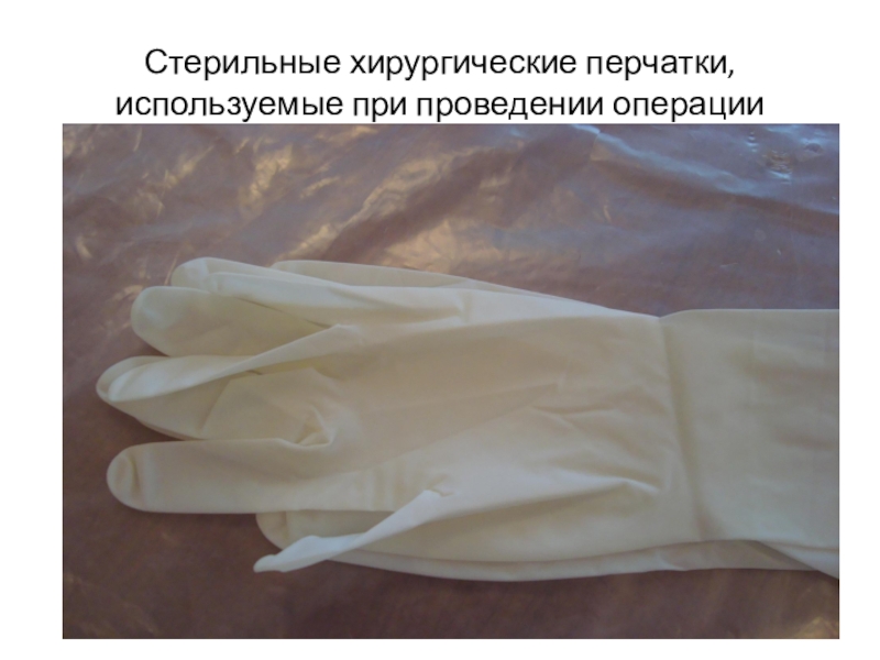 Слайд 5Стерильные хирургические перчатки, используемые при проведении операции