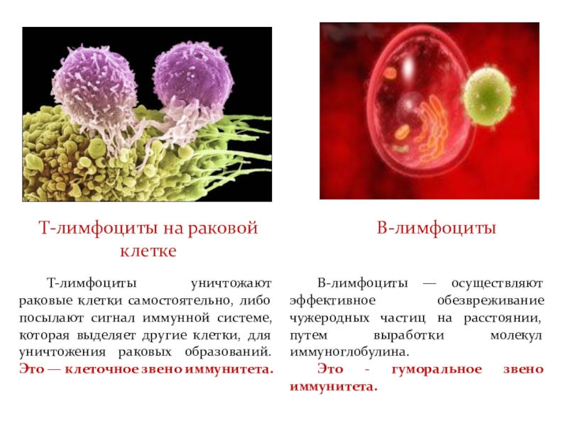 В-лимфоциты — осуществляют эффективное обезвреживание чужеродных частиц на расстоянии, путем выработки молекул иммуноглобулина.