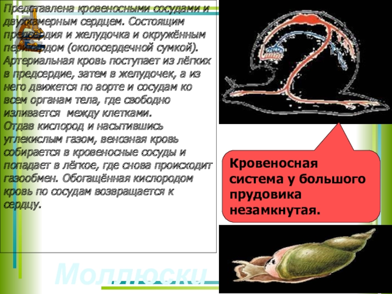 Левая дуга аорты отходит от средней части желудочка и несёт смешанную кровь ко всем органам тела.