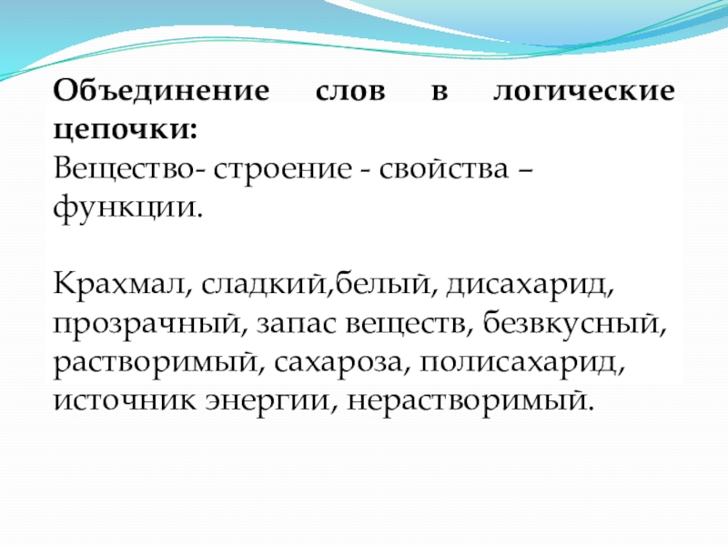 Слайд 16Объединение слов в логические цепочки: