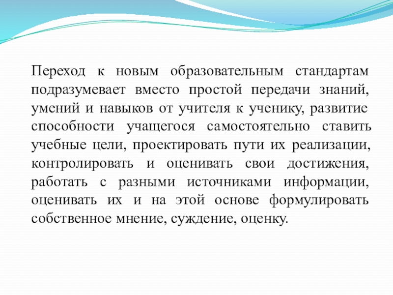 Слайд 3Переход к новым образовательным стандартам подразумевает вместо простой передачи знаний, умений