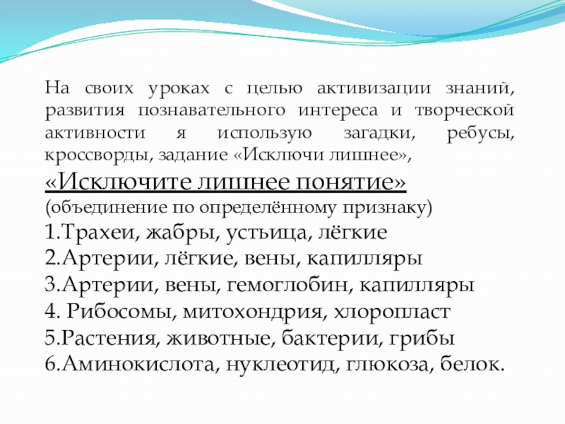 Слайд 14На своих уроках с целью активизации знаний, развития познавательного интереса и