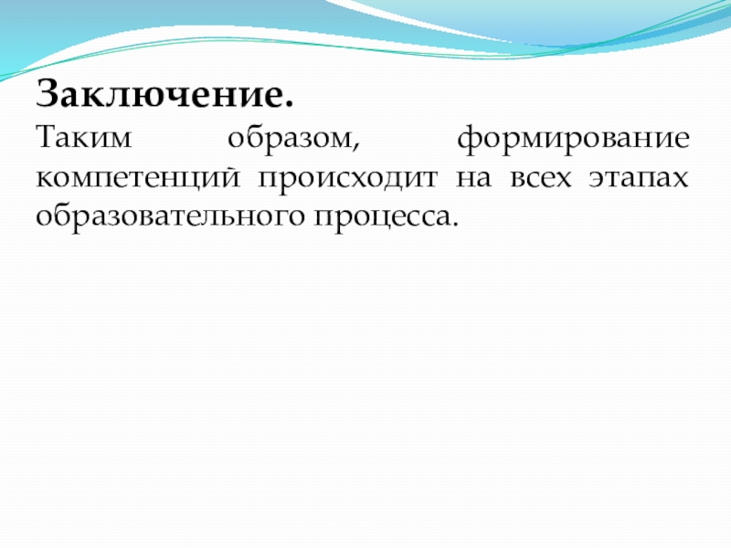 Таким образом, формирование компетенций происходит на всех этапах образовательного процесса.
