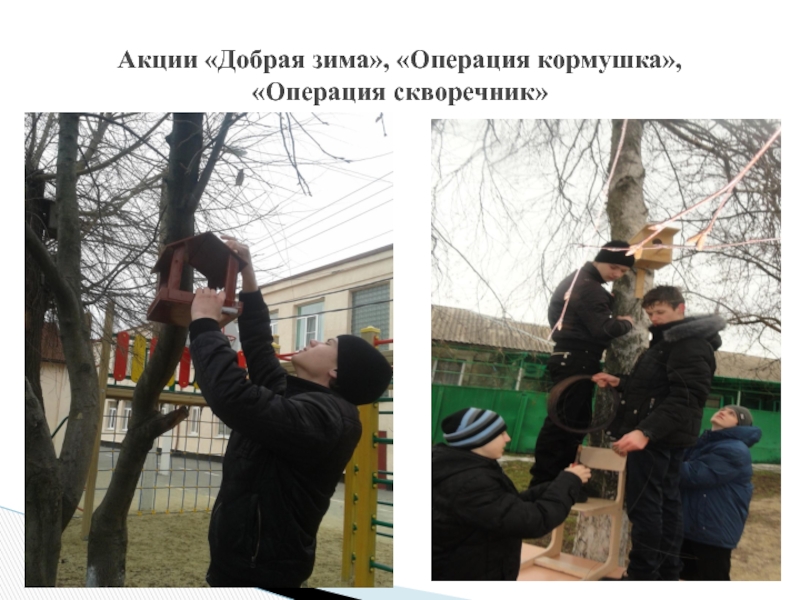 Акции «Добрая зима»; «Операция кормушка», «Операция скворечник»;