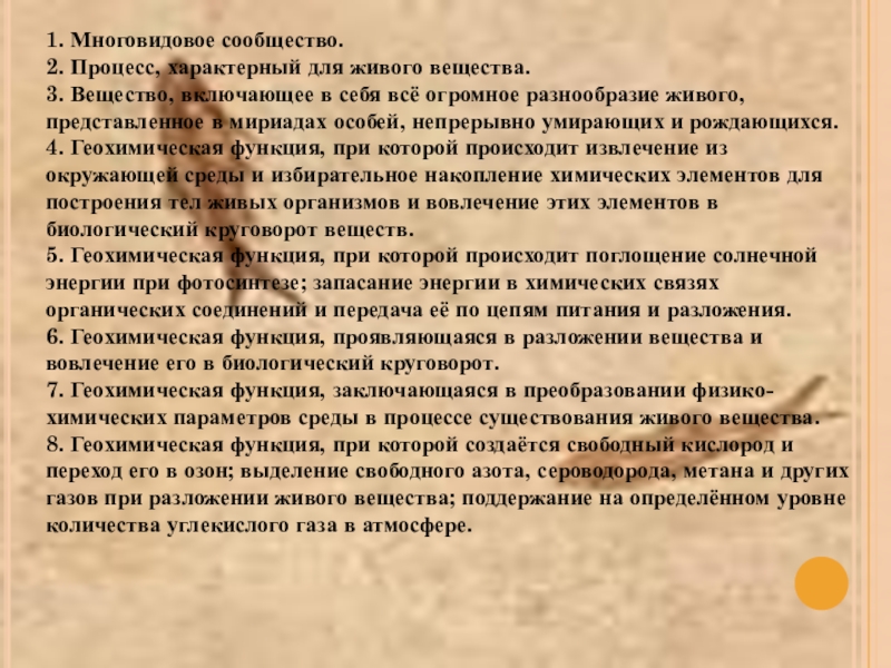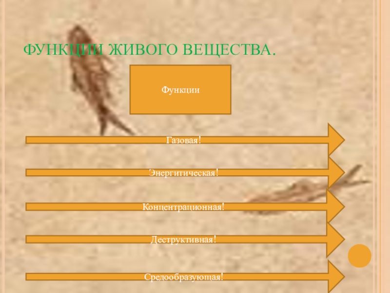 Слайд 1ФУНКЦИИ ЖИВОГО ВЕЩЕСТВА В БИОСФЕРЕ