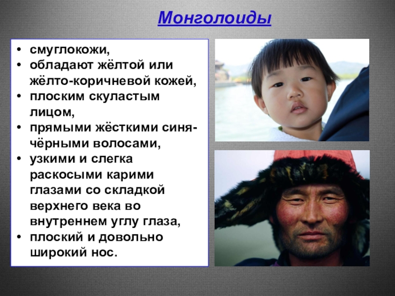 крупная голова и массивное лицо с очень широким и плоским носом, выступающим подбородком,