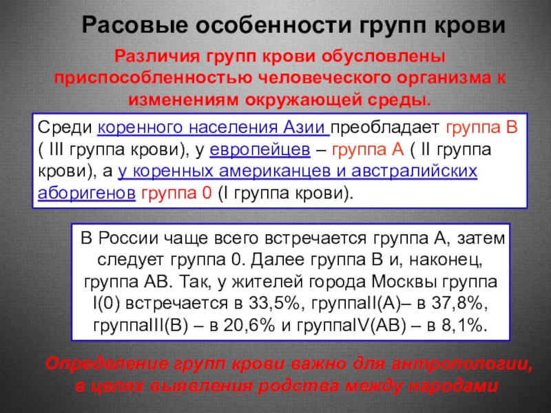 Различия групп крови обусловлены приспособленностью человеческого организма к изменениям окружающей среды.