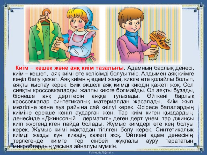 Слайд 14 Киім – кешек және аяқ киім тазалығы. Адамның барлық денесі, киім