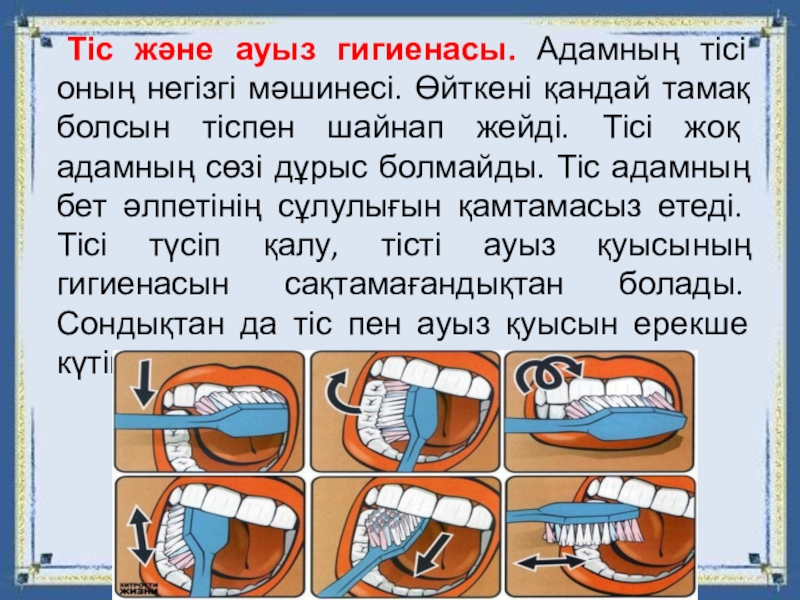 Слайд 11 Тіс және ауыз гигиенасы. Адамның тісі оның негізгі мәшинесі. Өйткені қандай