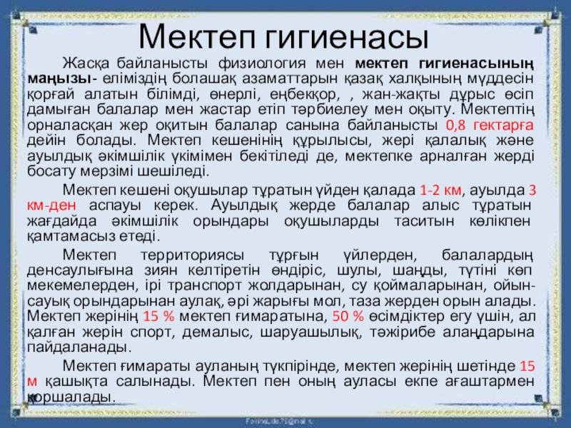 Жасқа байланысты физиология мен мектеп гигиенасының маңызы- еліміздің болашақ азаматтарын