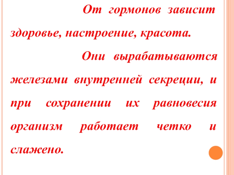 Слайд 21 От гормонов зависит здоровье, настроение,