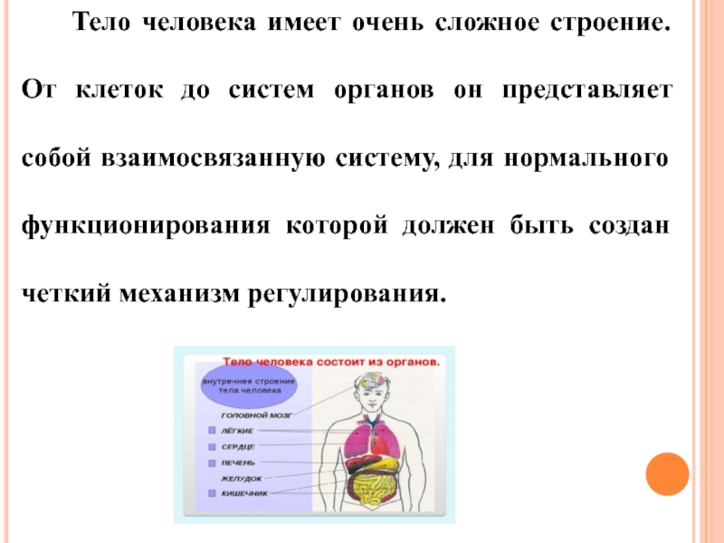 до систем органов он представляет собой взаимосвязанную систему, для нормального функционирования которой должен быть создан четкий механизм регулирования.