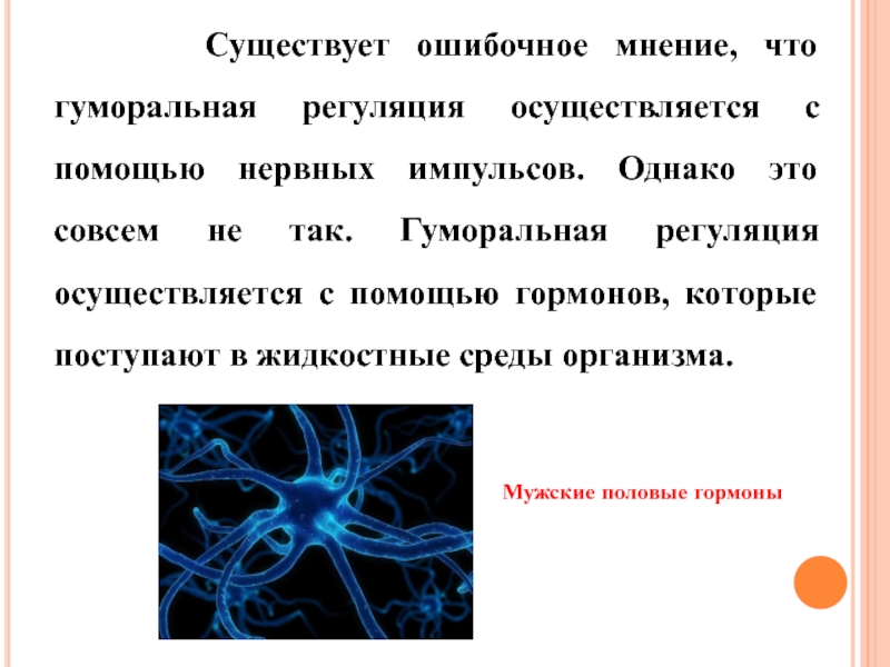 Слайд 3 Существует ошибочное мнение, что гуморальная регуляция осуществляется с