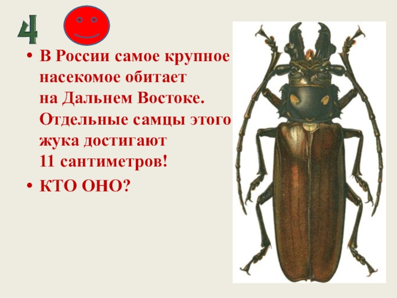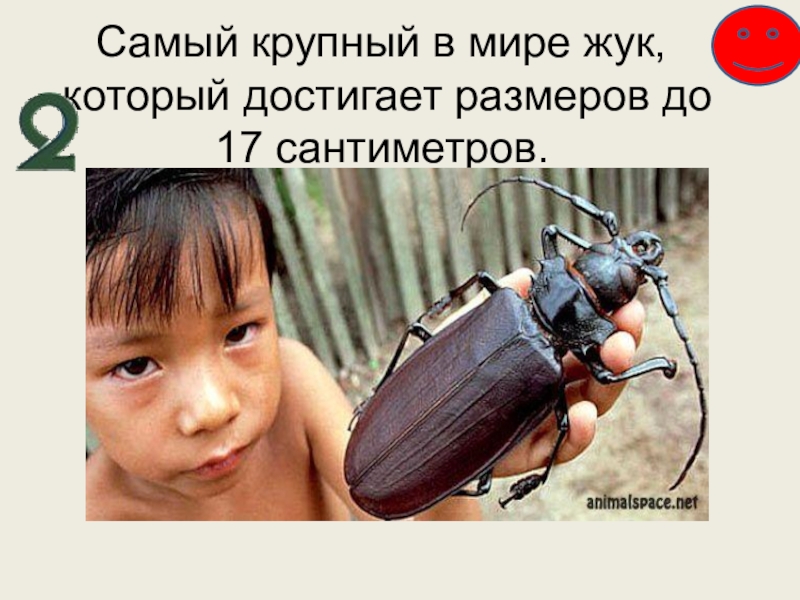 Слайд 64Самый крупный в мире жук, который достигает размеров до 17 сантиметров.