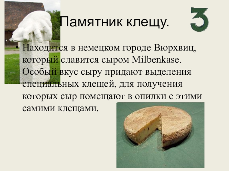 вкус сыру придают выделения специальных клещей, для получения которых сыр помещают в опилки с этими самими клещами.
