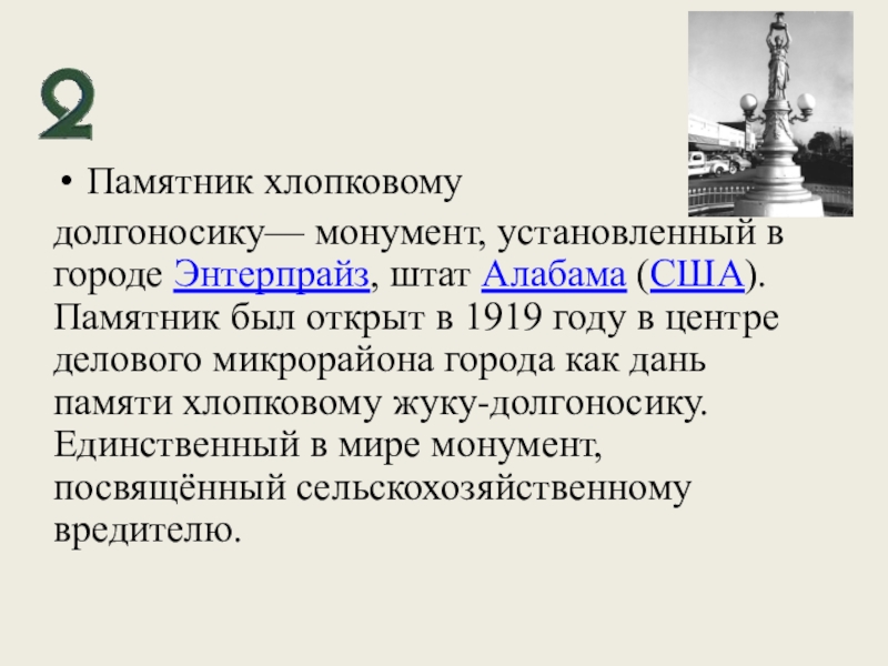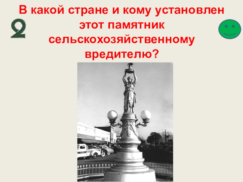 Слайд 16В какой стране и кому установлен этот памятник сельскохозяйственному вредителю?